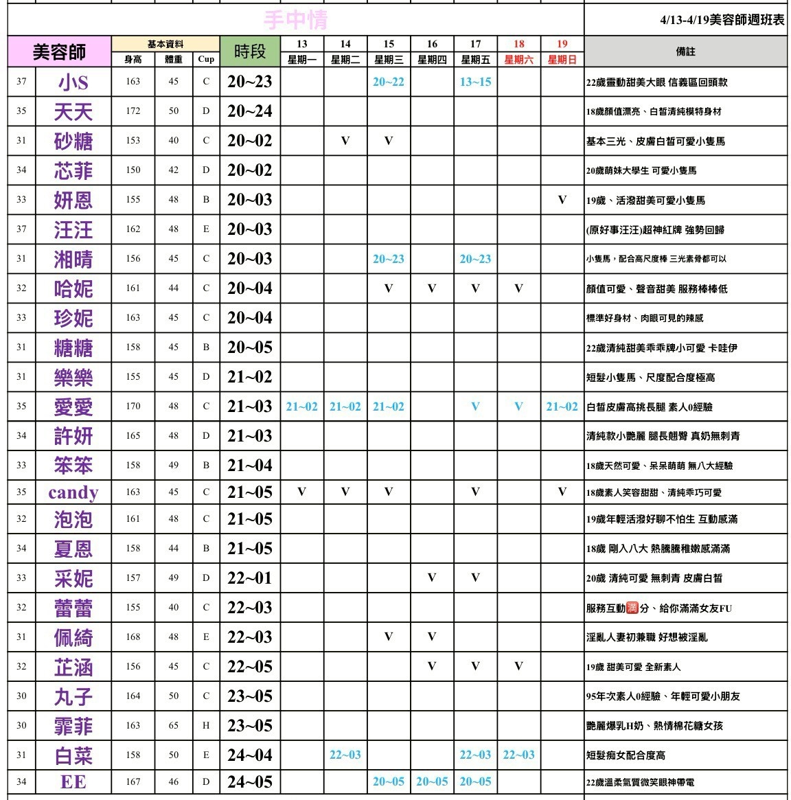 整周班表請往最下方滑