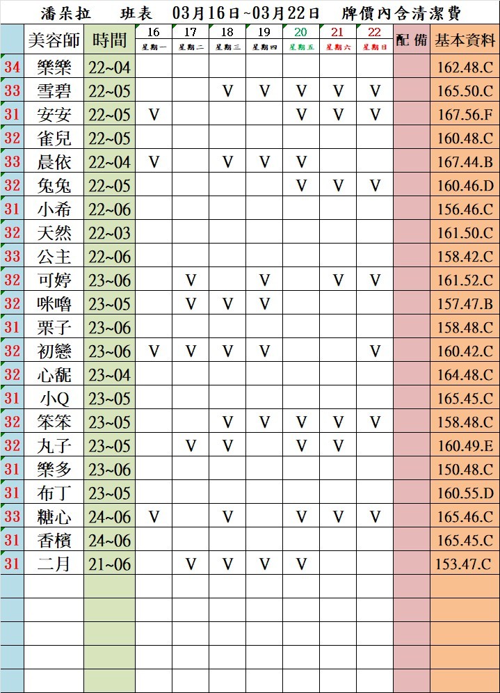 當週班表 115年度 3/16~3/22