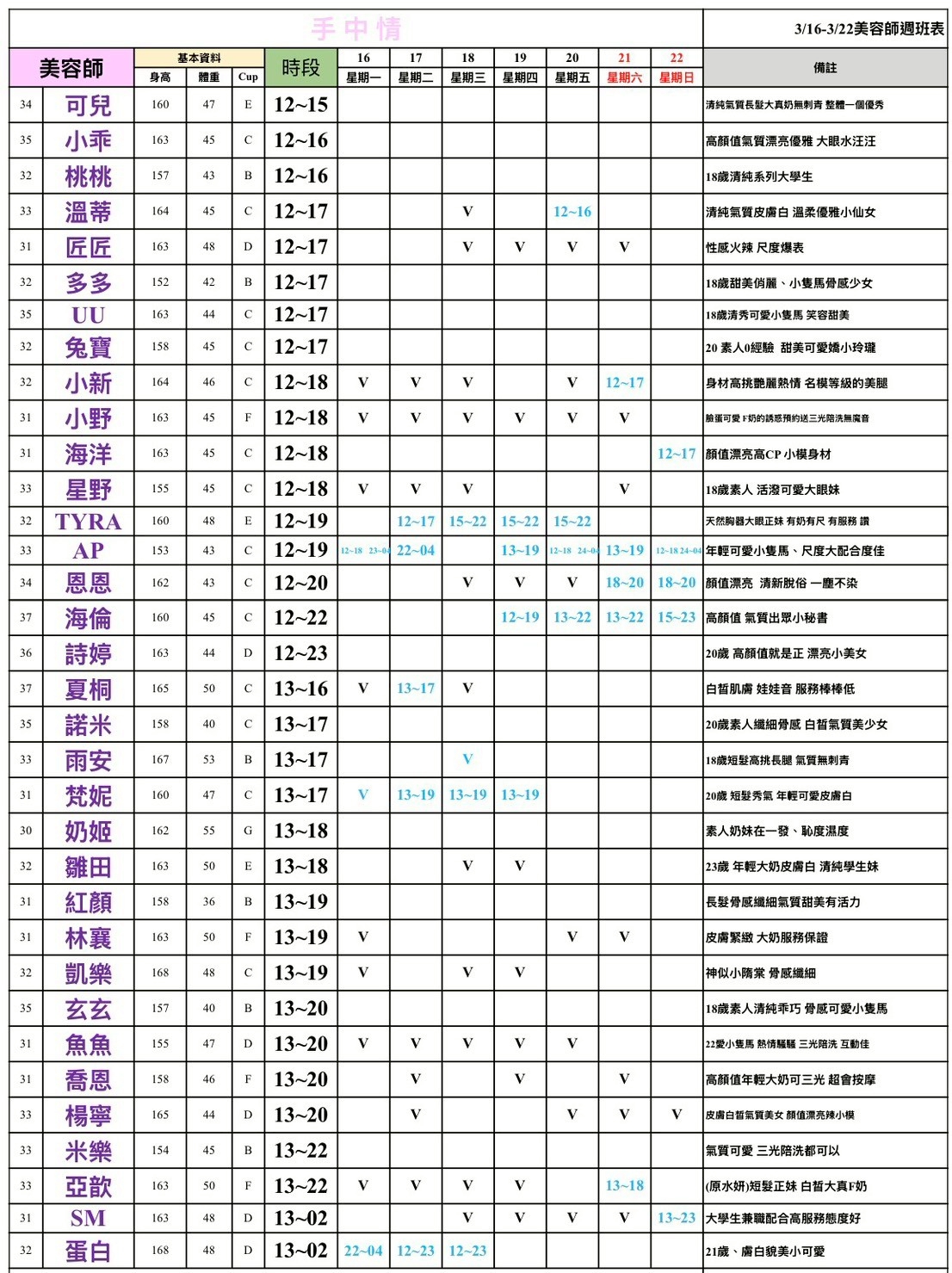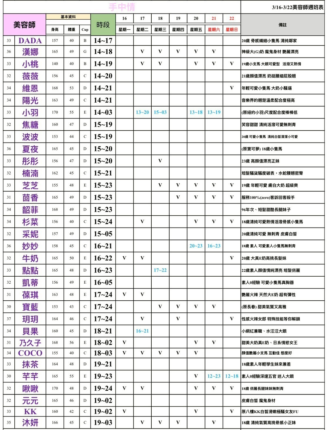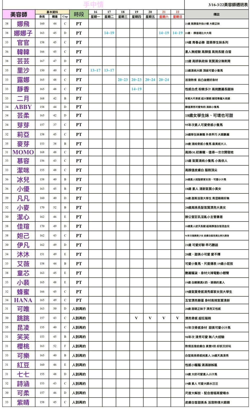 整周班表請往最下方滑