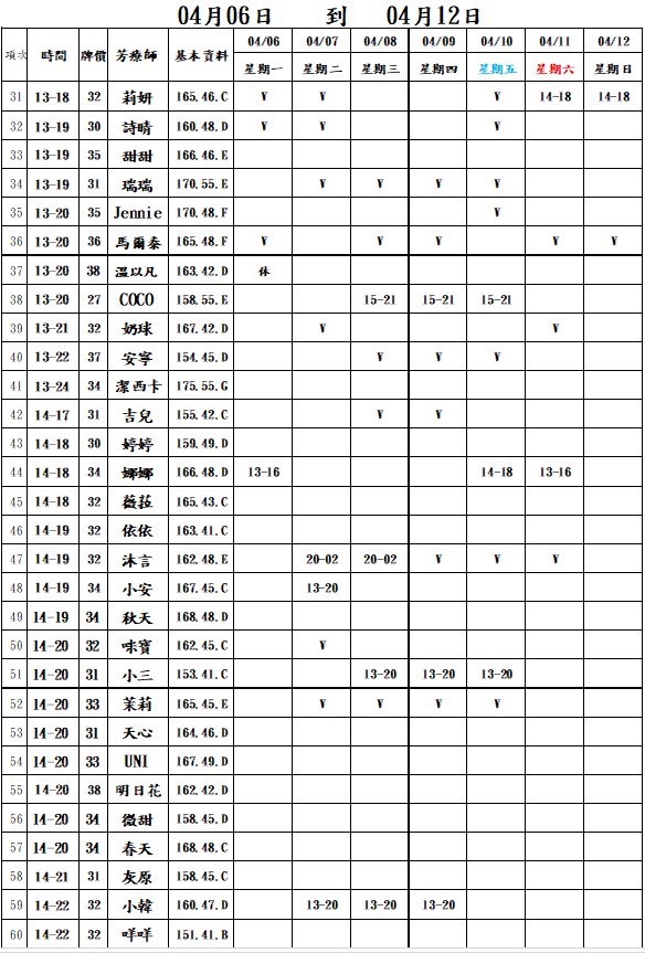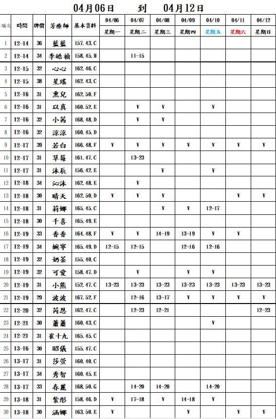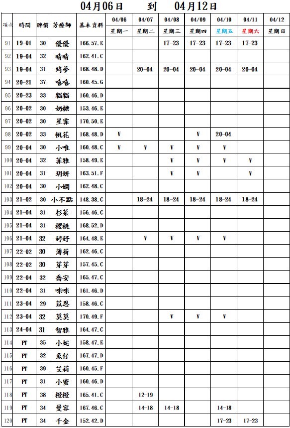 整周班表請往最下方滑